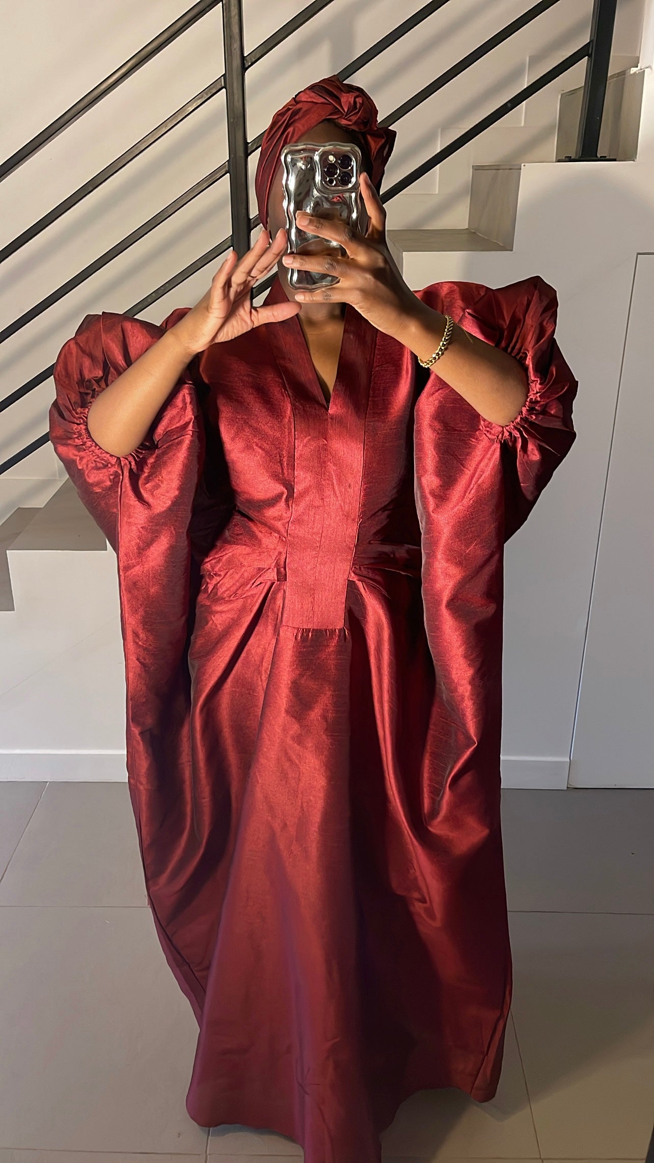 Le Boubou Leïna est une pièce réalisée en tissu uni shantung léger.