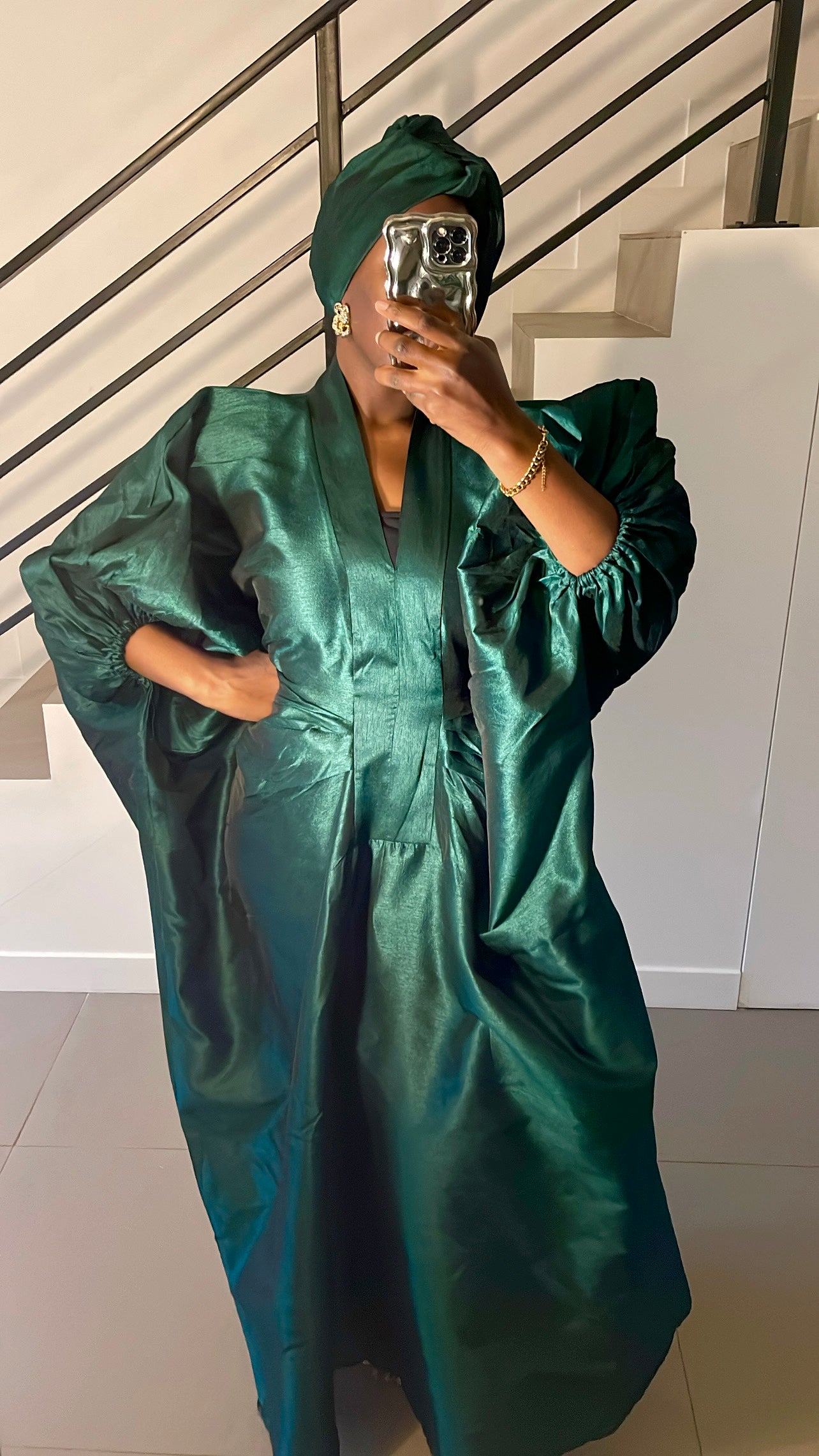 Le Boubou Leïna est une pièce réalisée en tissu uni shantung léger.